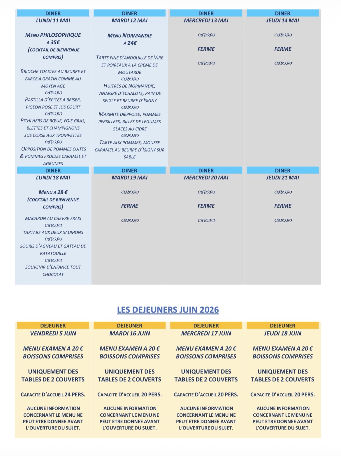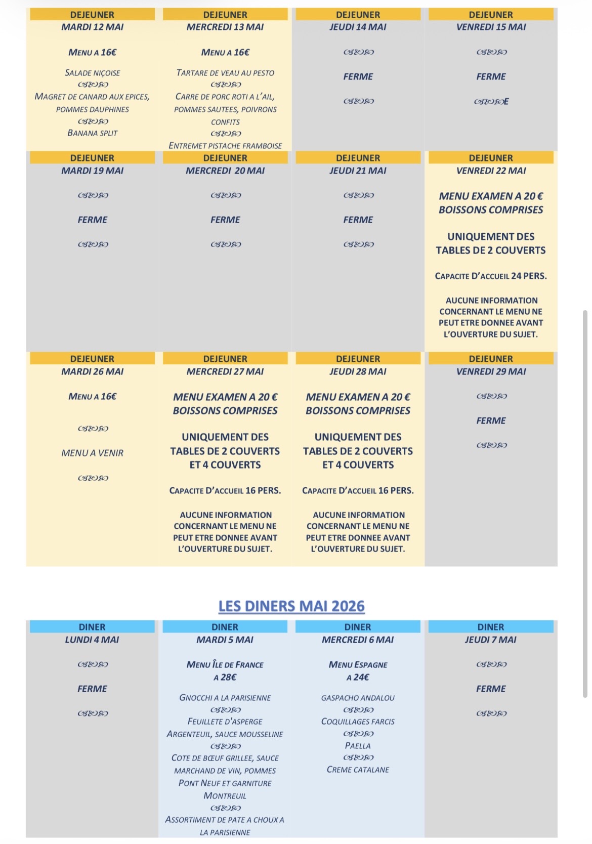 DEJEUNERS DINERS MAI